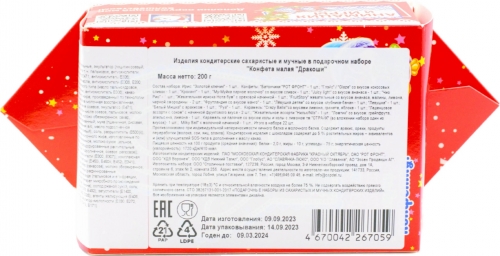 В нашем интернет-магазине Вы можете купить "Новогодний подарок Под'Ари Конфета малая Дракоши 200 гр картон" по низкой оптовой цене с быстрой и удобной доставкой в г.Мурманск (Мурманская область). Мы предлагаем широкий ассортимент импортных сладостей и напитков от проверенных поставщиков и реализуем продукцию во всех регионах РФ.