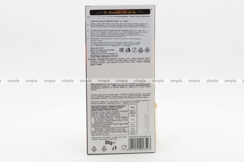 В нашем интернет-магазине Вы можете купить "Шоколад HEIDI Chocolat S.A. DARK MILD 50% (Темный) 80гр" по низкой оптовой цене с быстрой и удобной доставкой в г.Мурманск (Мурманская область). Мы предлагаем широкий ассортимент импортных сладостей и напитков от проверенных поставщиков и реализуем продукцию во всех регионах РФ.